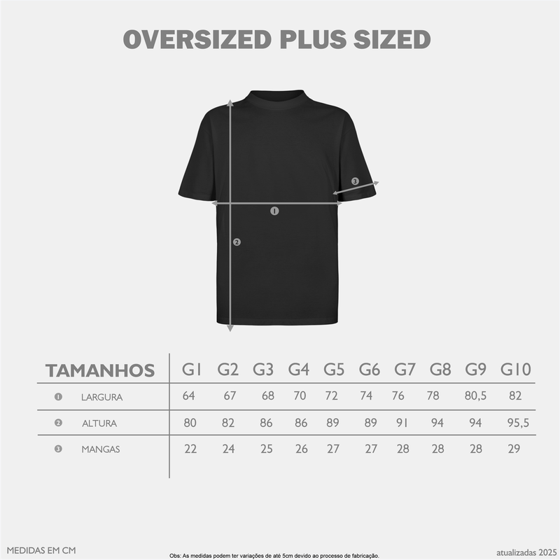A camiseta StreetWear Oversized (Plus Size) é confeccionada em malha 100% algodão com fio 30.1 super penteado, ribana canelada 2x1 e reforço na gola. O tecido deslumbram um toque macio e contém ULTRA COTTON e amaciamento. Possui um acabamento perfeito e super confortável. Caimento Streetwear Oversized, ideal para espaços urbanos e praias.